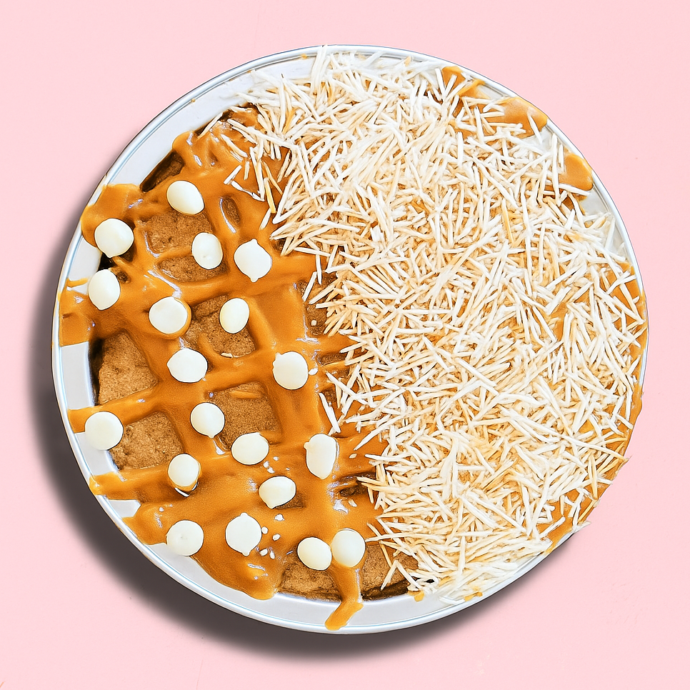 A viral-worthy indulgence, this deep-dish skillet cookie starts with a rich, chewy Biscoff cookie dough—loaded with crunchy shards of toasted kataifi for an unexpected golden crisp in every bite. Dig into the center and discover a molten heart of creamy Biscoff spread and buttery toasted kataifi, oozing with caramelized goodness. It’s the perfect balance of chewy, gooey, and crunchy—Biscoff lovers, this one’s for you.